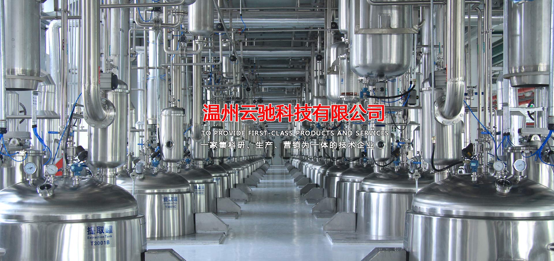 溫州云馳科技有限公司是一家集科研、生產、營銷為一體的技術企業(yè),本公司生產的中藥提取、濃縮、蒸發(fā)及有機溶媒回收設備,衛(wèi)生級不銹鋼容器設備,衛(wèi)生級管道配件等系列產品,范圍涵蓋制藥工程、乳品工程、生物工程、化工工程等領域,目前,本公司產品包含八大系列和28類品種,分別為中藥提取設備、濃縮設備、純化分離設備,酒精回收設備,配液系統設備,食品乳品機械設備,不銹鋼容器設備以及輔助配套設備等,力爭為廣大客戶提供滿意的交鑰匙工程服務,目前,本公司已與多家科研院所及相關設計單位、行業(yè)協會、技術專員合作,建立了完善的科研開發(fā)體系,技術力量雄厚,擁有先進的質量保證體系,我們將打造一支素質高,技術精,服務熱情的職業(yè)化隊伍,為廣大客戶解決設備工藝上的需求和難題并為廣大客戶提供優(yōu)質的服務。